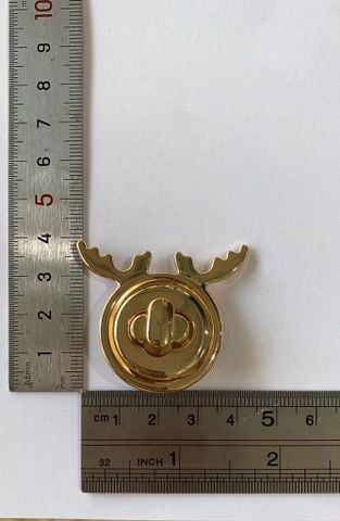 Mặt Khóa Túi Xách/Khóa Túi Xách/Khóa Túi/Phụ Kiện Khóa Kim Loại Cho Túi/Mặt Khóa Cặp-Túi-Clutch/Khóa Cài/handbag Twist Lock/Mặt Khoá JR Hình Hai Sừng Nai Kích Thước 50mm Mạ Bóng Đẹp Hợp Kim Không Gỉ Phụ Kiện Làm Túi Xách Hàng Phổ Thông - Màu Vàng 18K